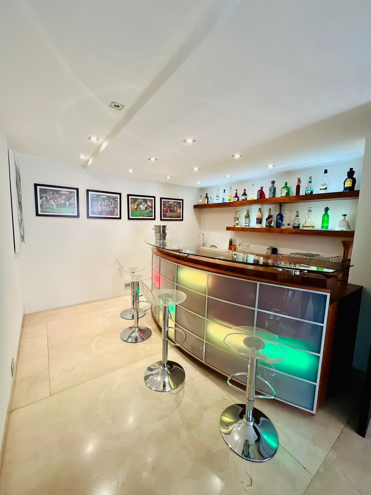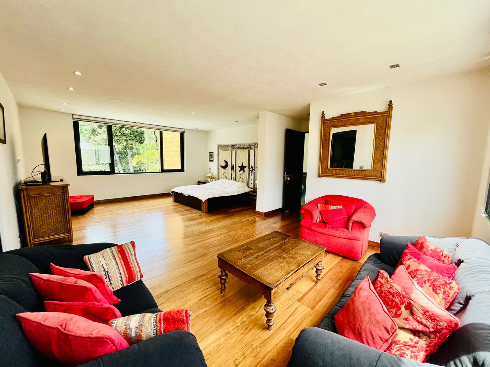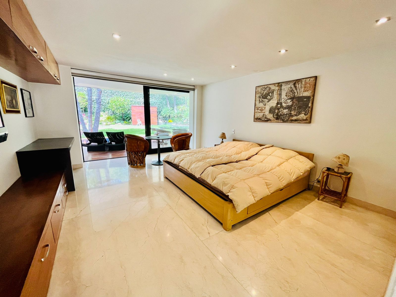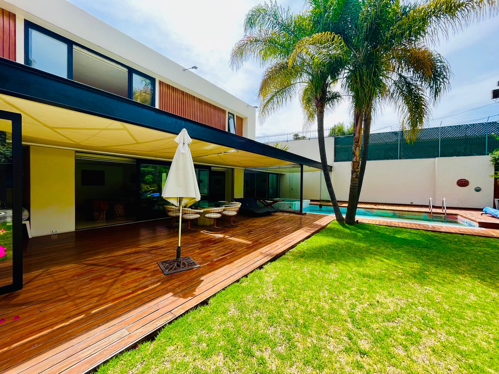 4 amplias recámaras, bella cocina Miele, sistema de audio, bar con iluminación variable, cava, sistema solar y alto standard de nueva tecnología alemana de casa inteligente.