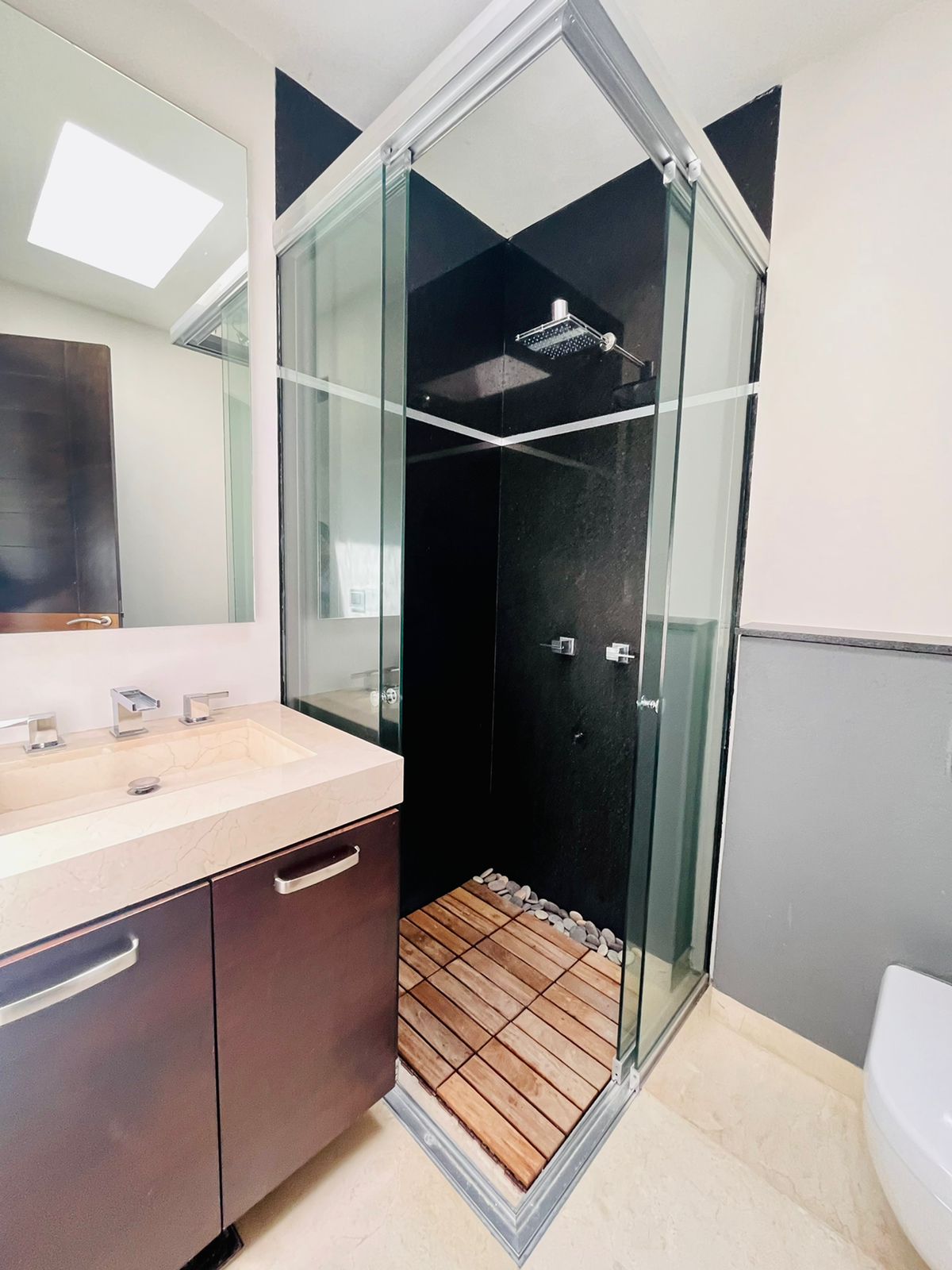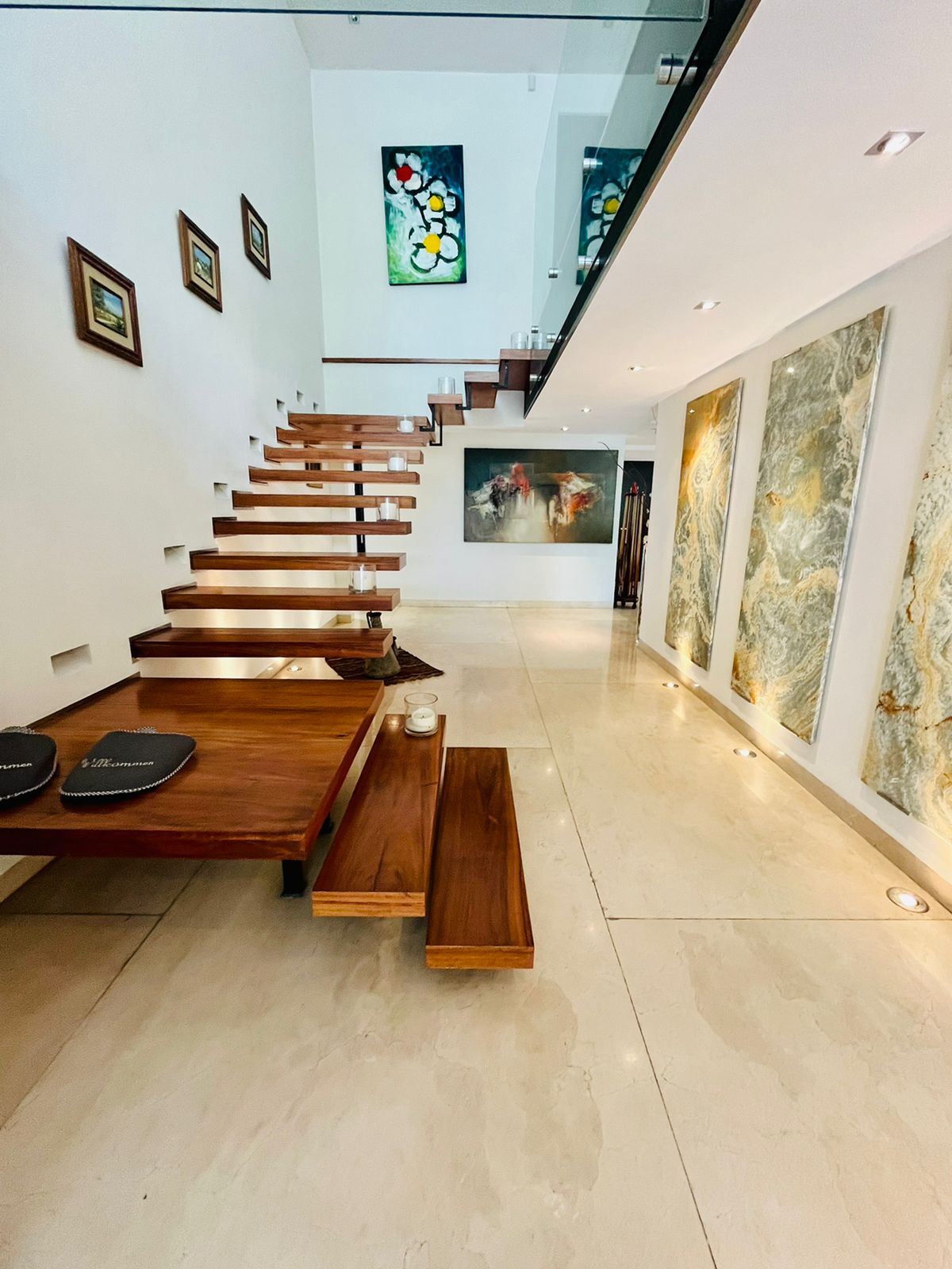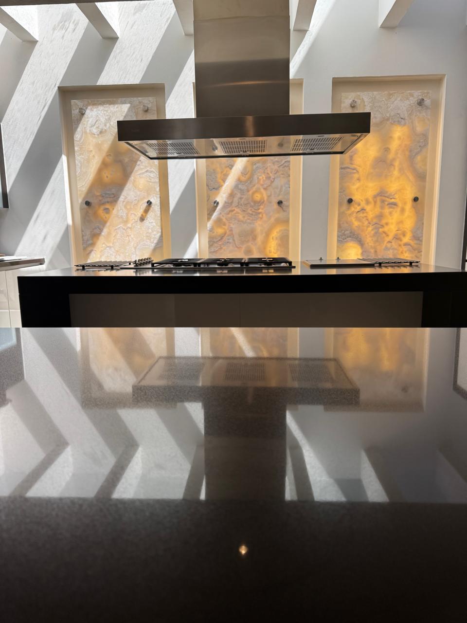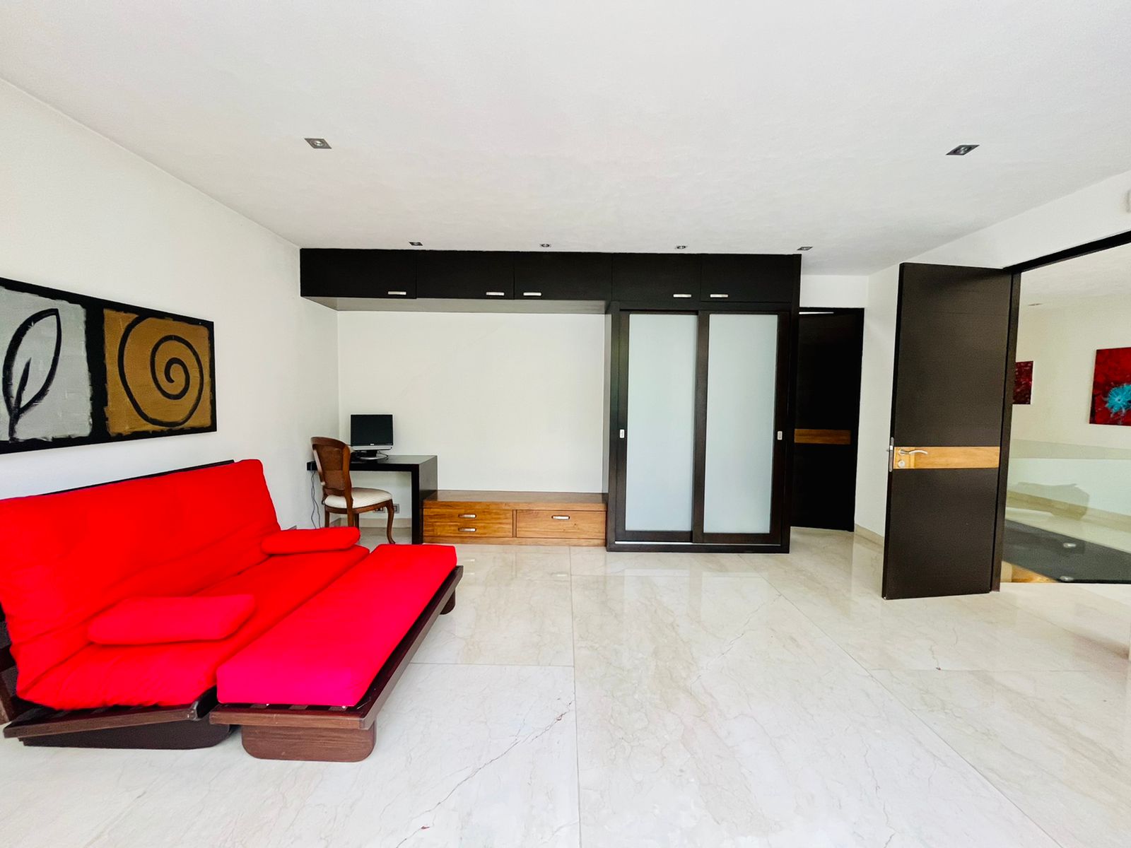 4 amplias recámaras, bella cocina Miele, sistema de audio, bar con iluminación variable, cava, sistema solar y alto standard de nueva tecnología alemana de casa inteligente.