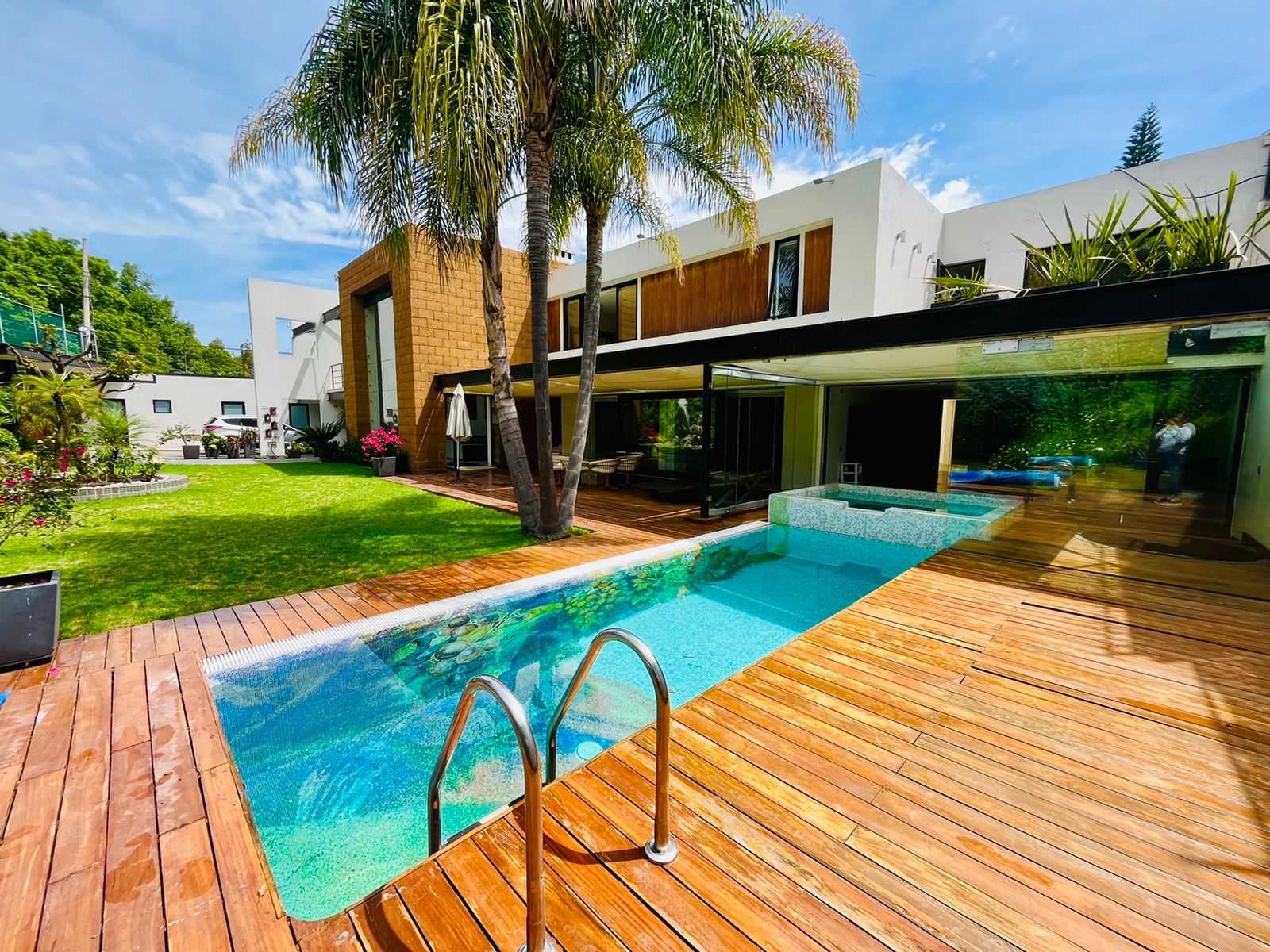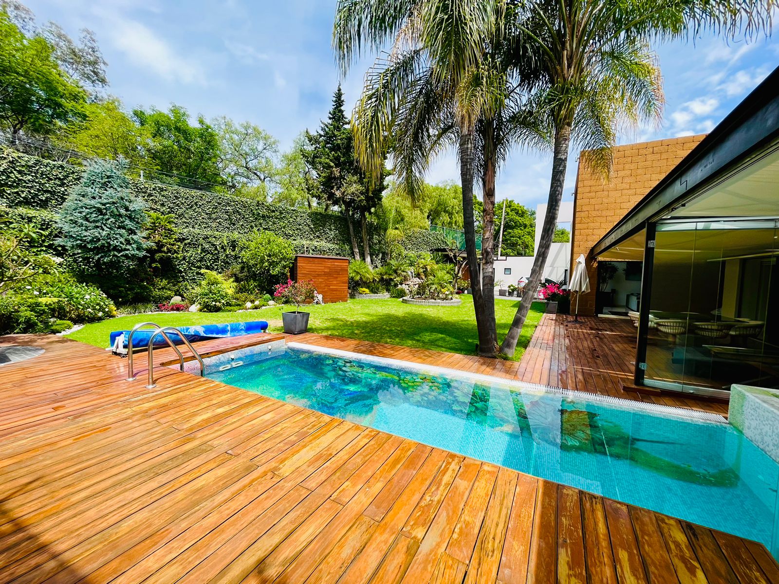 Posee una extraordinaria piscina con obra de arte en azulejos, bella cascada relajante y un increible y gran jardín para disfrutar de memorables momentos en compañia de sus seres queridos.