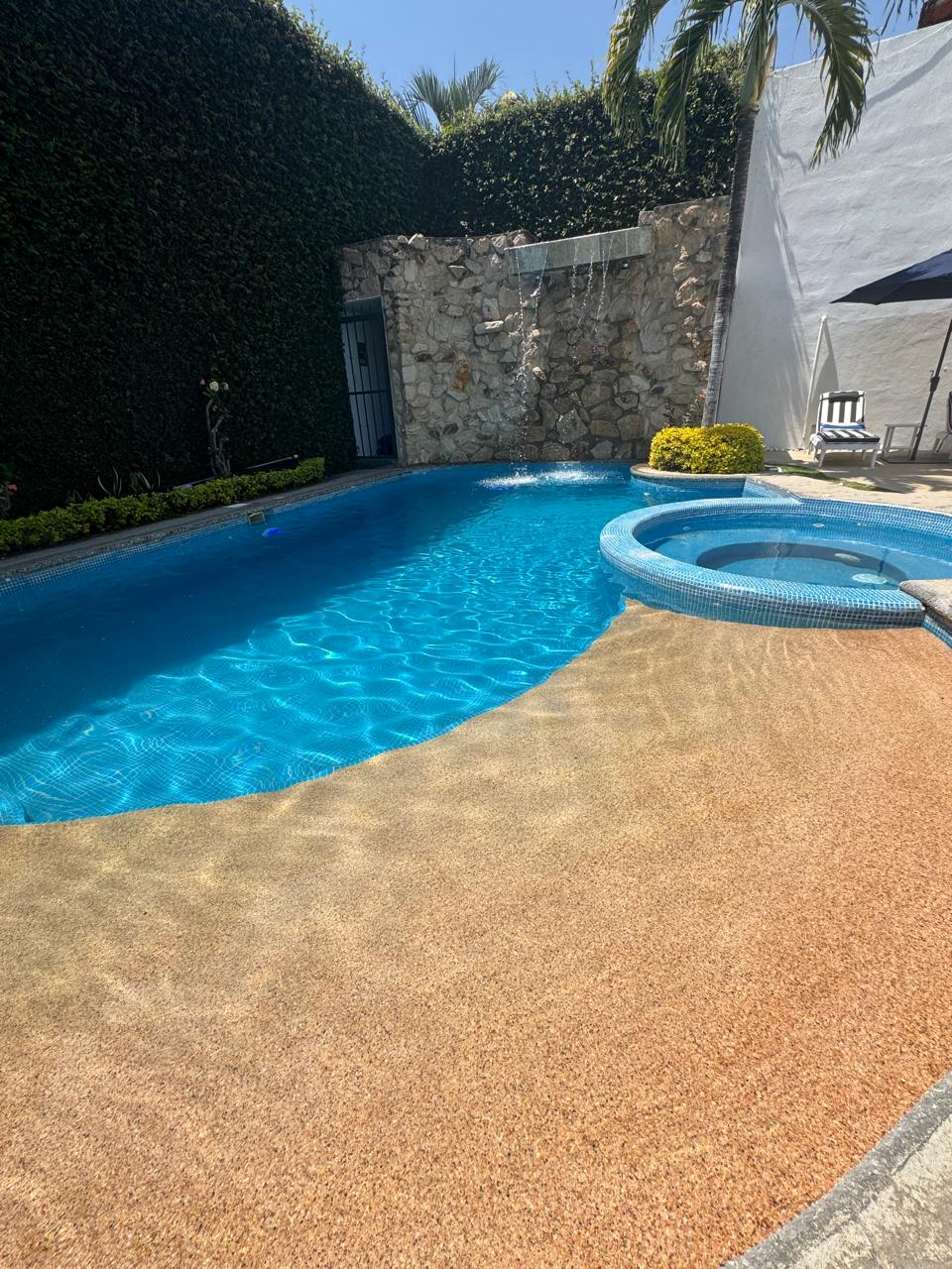El área exterior es un verdadero refugio con una terraza ideal para reuniones, un extenso jardín maduro con árboles de limón, pinos y palmeras, y una alberca climatizada (gas LP y solar) con entrada tipo playa y jacuzzi regulable a 31°C. Además, la propiedad cuenta con un gimnasio con sauna y un cuarto de juegos, añadiendo exclusividad y confort.