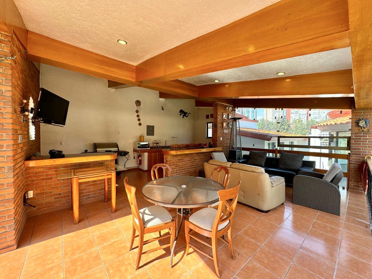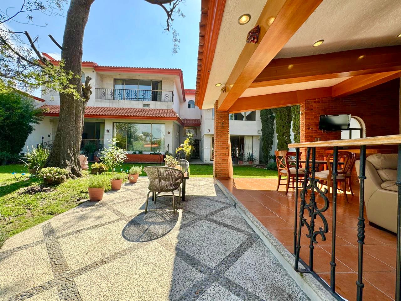 Cuenta con un precioso jardín, en el que podrá disfrutar de una terraza techada y equipada con cocina, parrilla y barra para gozar de maravillosos y memorables momentos en compañia de sus seres queridos.