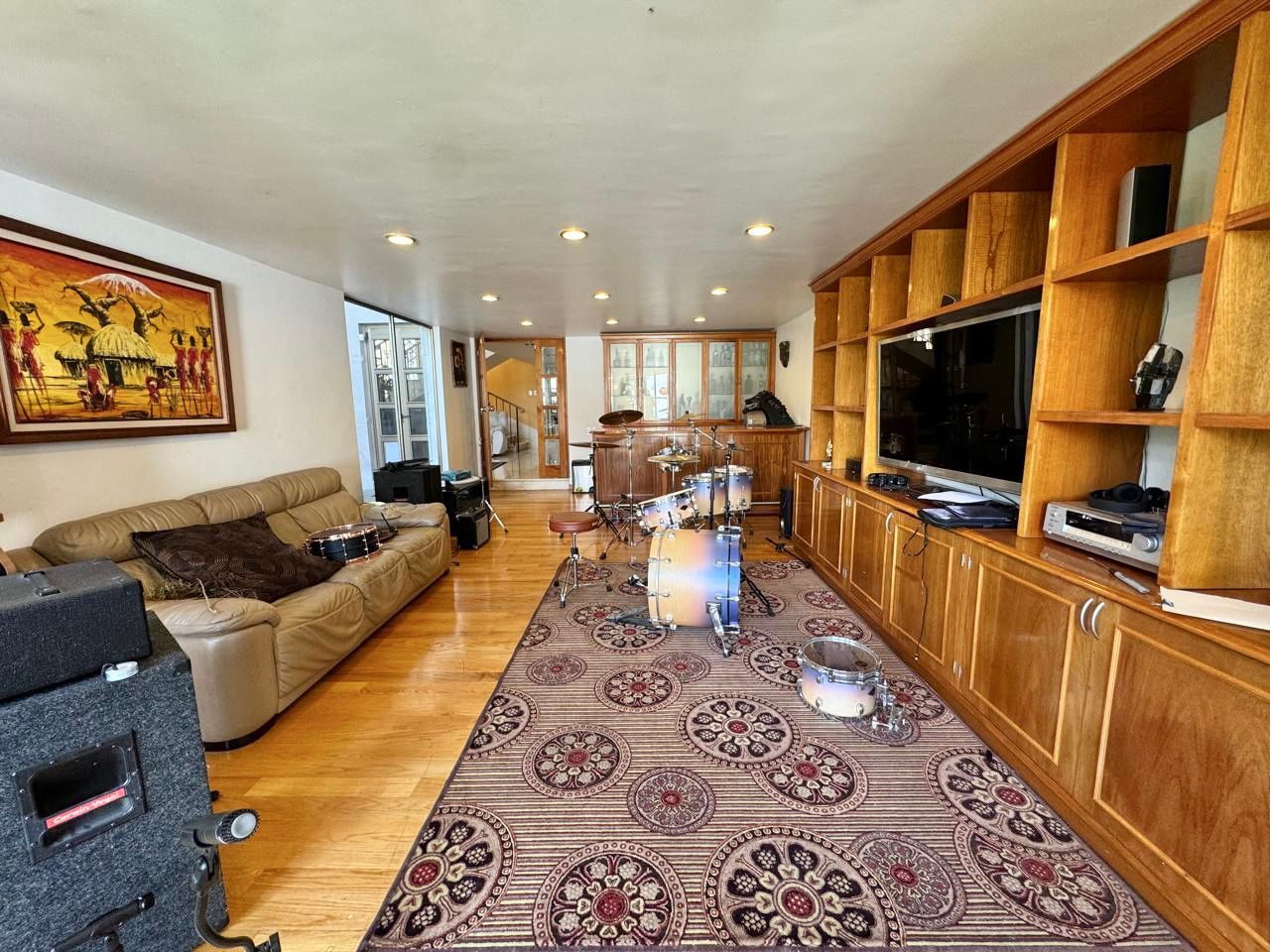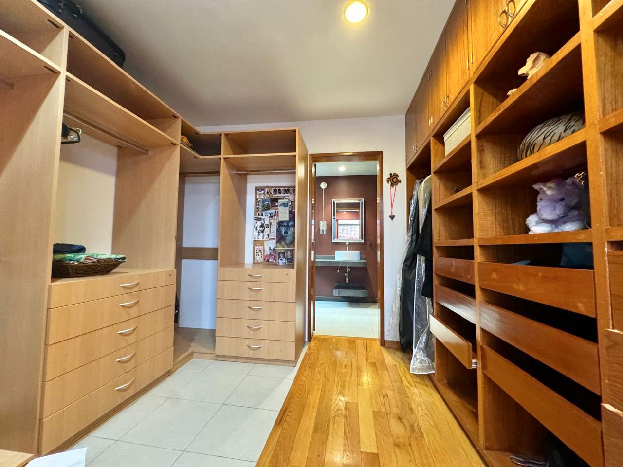Al bajar medio nivel una sala de TV con bar, closets de blancos, medio baño de visitas y acceso desde garage.
